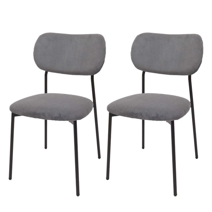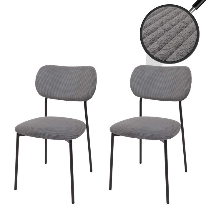 2er-Set Esszimmerstuhl HWC-O26, Cord (330g/m²) Stoff/Textil Metall – dunkelgrau