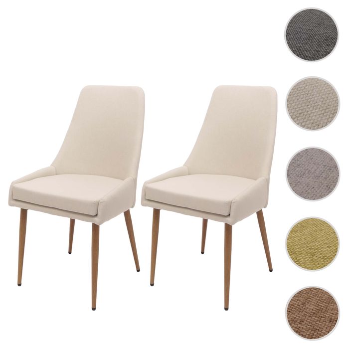 2er-Set Esszimmerstuhl HWC-O27, Stoff/Textil (280g/m²) Metall – beige
