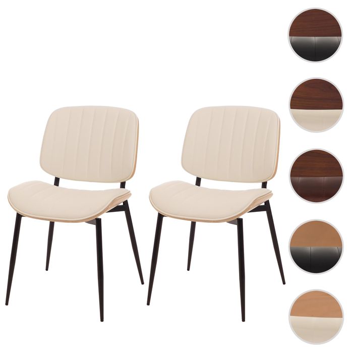 2er-Set Esszimmerstuhl HWC-O44, Bugholz Kunstleder Öko-Tex FSC® – natur, weiss