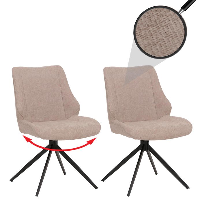 2er-Set Esszimmerstuhl HWC-O48, drehbar Auto-Return, Stoff/Textil Chenille (320g/m²) Öko-Tex – beige
