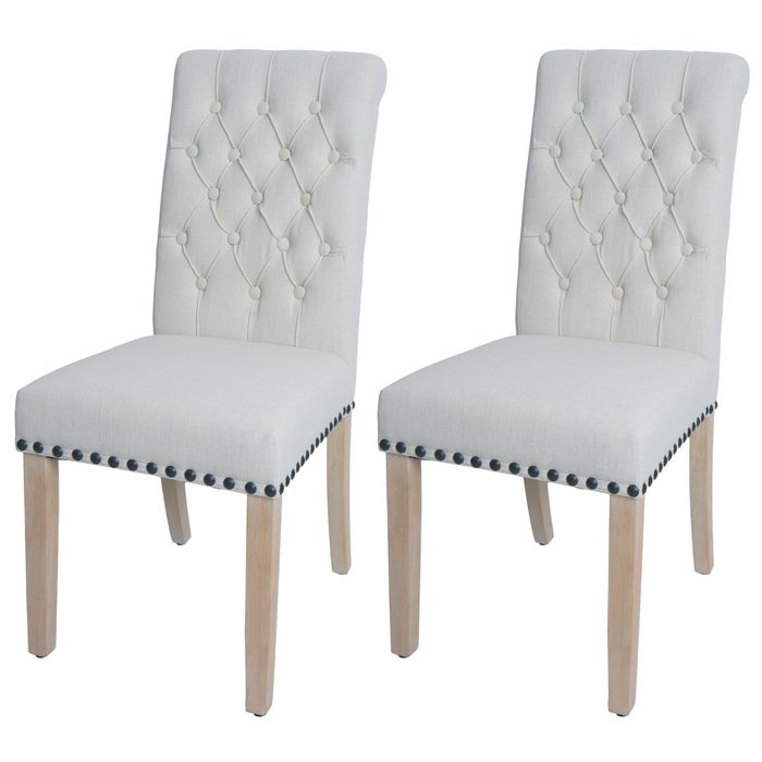 2er-Set Esszimmerstuhl HWC-O66, Chesterfield Nieten Stoff/Textil – weiss