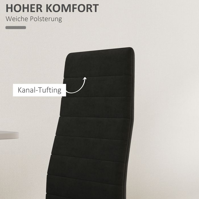 4er-Set Esszimmerstühle, armloses Design, Stoffpolsterung, Metallbeine, Schwarz