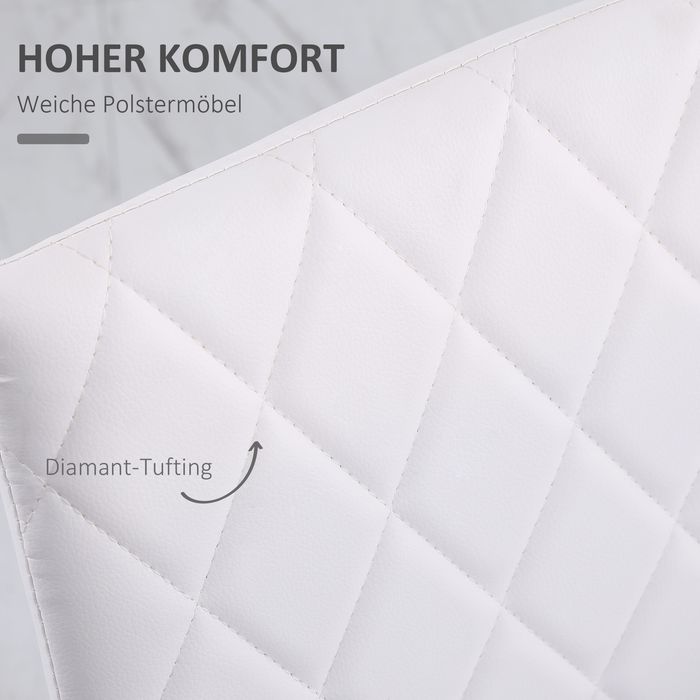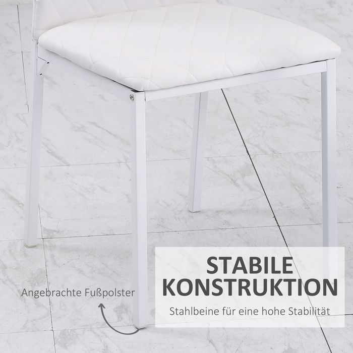 4er-Set Esszimmerstühle, mit Rückenlehne, Kunstleder, Fusspolster, Metallbeine, Weiss