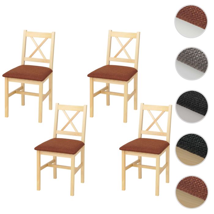 4er-Set Esszimmerstuhl HWC-F77, Massiv-Holz Stoff Landhaus – natur Polster terrakotta