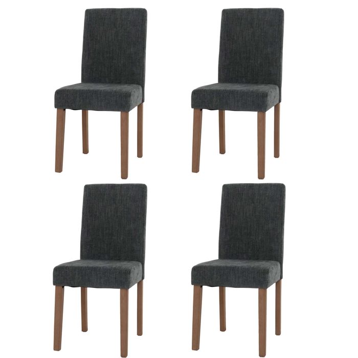4er-Set Esszimmerstuhl Littau, Stuhl Küchenstuhl Hochlehner, Stoff/Textil Chenille Holz - dunkelgrau, naturfarbene Beine