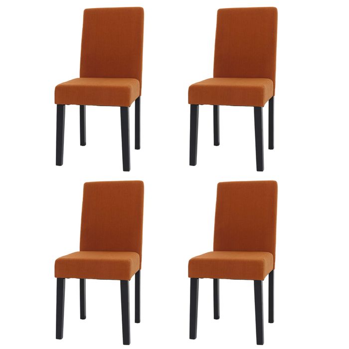 Das 4er-Set bringt Stil und Komfort in Ihr Zuhause. Die Stühle sind mit einem modernen Cord-Stoffbezug ausgestattet, der nicht nur optisch ansprechend, sondern auch äusserst robust ist. Die hohe Rückenlehne sorgt für zusätzlichen Sitzkomfort, während die komfortable Polsterung dafür sorgt, dass Sie und Ihre Gäste sich bei jeder Mahlzeit wohlfühlen. Abgerundete Ecken und Kanten tragen zur Sicherheit bei und verleihen den Stühlen ein elegantes, weiches Aussehen.