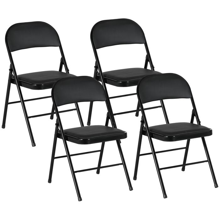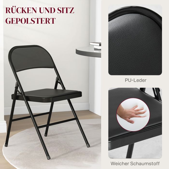 4er-Set Klappstühle, Tragbare Bürostühle, Metallbeine, Faltstuhl für Büro, Empfang, Wartezimmer, Kunstleder, Schwarz