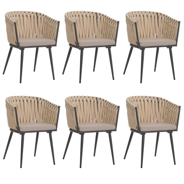 6er-Set Aluminium-Esszimmerstuhl HWC-N38, Indoor Stuhl Armlehne, Olefin Seilgeflecht Rope - creme Kissen hellbraun