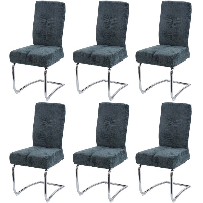 6er-Set Esszimmerstuhl G56, Lehnstuhl, Metall Stoff/Textil Chenille - blau-grün