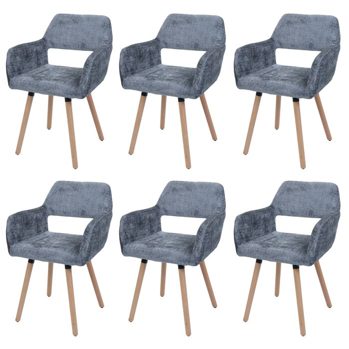 6er-Set Esszimmerstuhl HWC-A50 II, Küchenstuhl Polsterstuhl, Holz Stoff/Textil Chenille (465g/m²) MVG - dunkelgrau