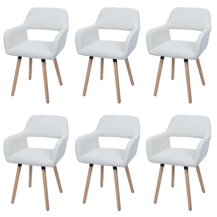 6er-Set Esszimmerstuhl HWC-A50 II, Stuhl Küchenstuhl Polsterstuhl, Holz Stoff/Textil Cord (400g/m²) MVG - creme-weiss