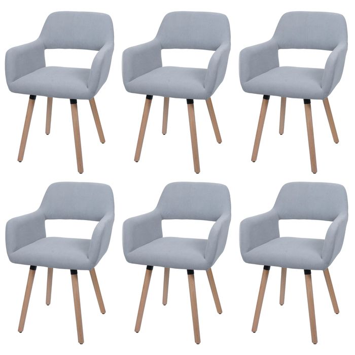 6er-Set Esszimmerstuhl HWC-A50 II, Stuhl Küchenstuhl Polsterstuhl, Holz Stoff/Textil Cord (400g/m²) MVG - hellgrau