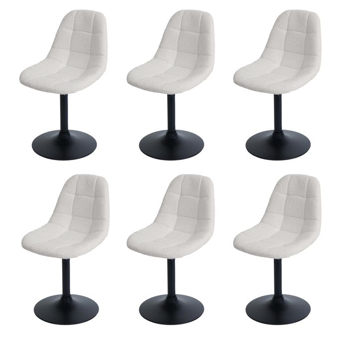 6er-Set Esszimmerstuhl HWC-A60, Küchenstuhl Stuhl Drehstuhl, Stahl FSC® Stoff/Textil Bouclé (450g/m²) - creme