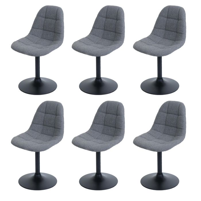 6er-Set Esszimmerstuhl HWC-A60, Küchenstuhl Stuhl Drehstuhl, Stahl FSC® Stoff/Textil Bouclé (450g/m²) - dunkelgrau