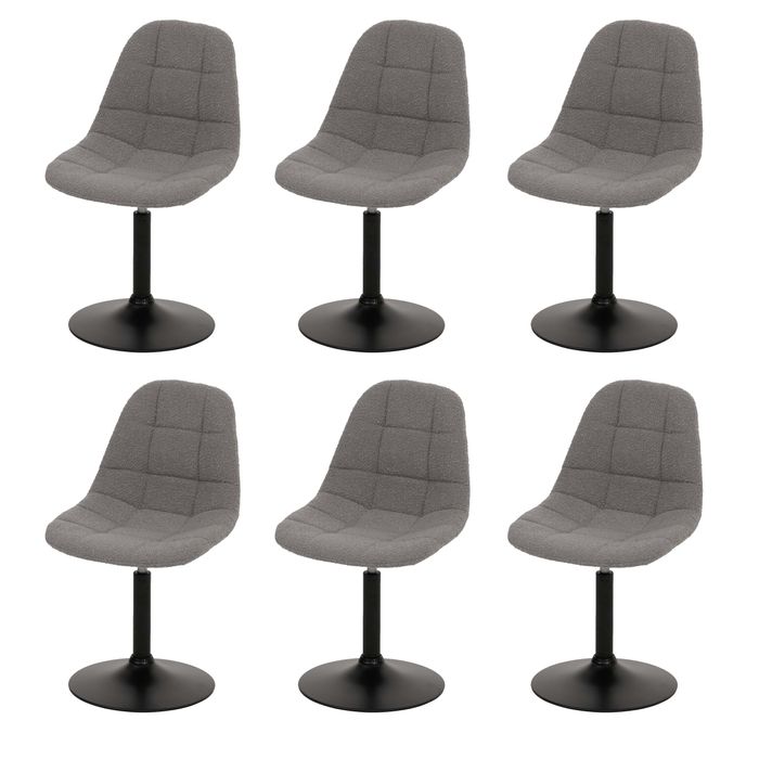 6er-Set Esszimmerstuhl HWC-A60, Küchenstuhl Stuhl Drehstuhl, Stahl FSC® Stoff/Textil Bouclé (450g/m²) - grau