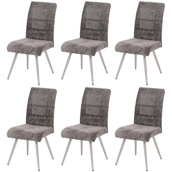 6er-Set Esszimmerstuhl HWC-G55, Küchenstuhl Lehnstuhl, Edelstahl gebürstet Stoff/Textil Chenille Öko-Tex - dunkelgrau