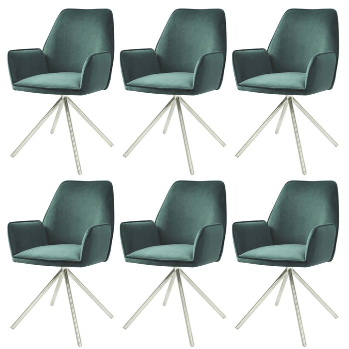 6er-Set Esszimmerstuhl HWC-G67, Küchenstuhl Stuhl Armlehne, drehbar Auto-Position, Samt - grün, Edelstahl