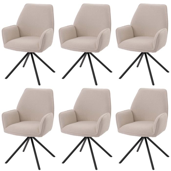 6er-Set Esszimmerstuhl HWC-G67, Küchenstuhl Stuhl Armlehne, drehbar Auto-Position, Stoff Bouclé Öko-Tex MVG - creme