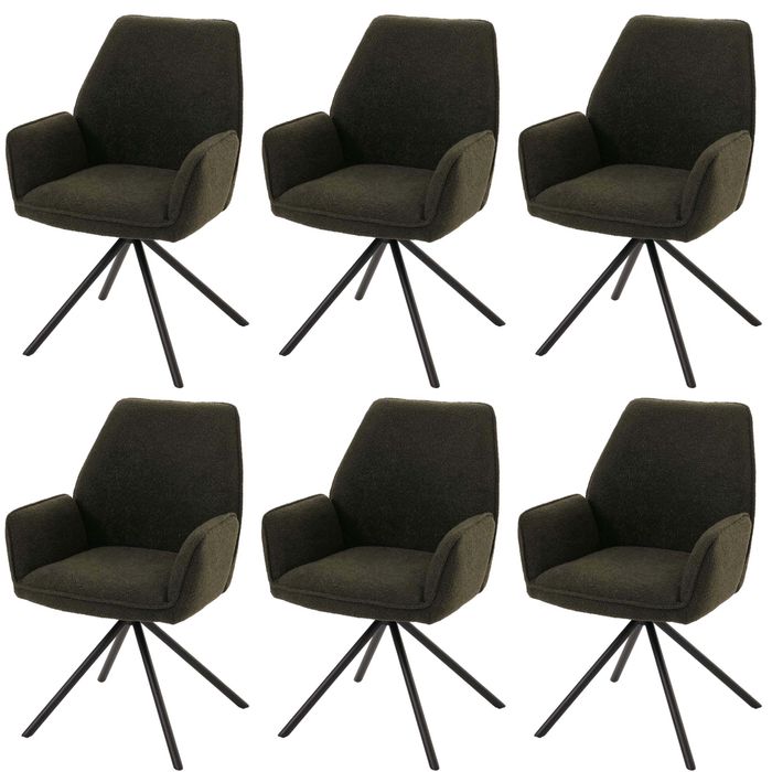 6er-Set Esszimmerstuhl HWC-G67, Küchenstuhl Stuhl Armlehne, drehbar Auto-Position, Stoff Bouclé Öko-Tex MVG - olivgrün