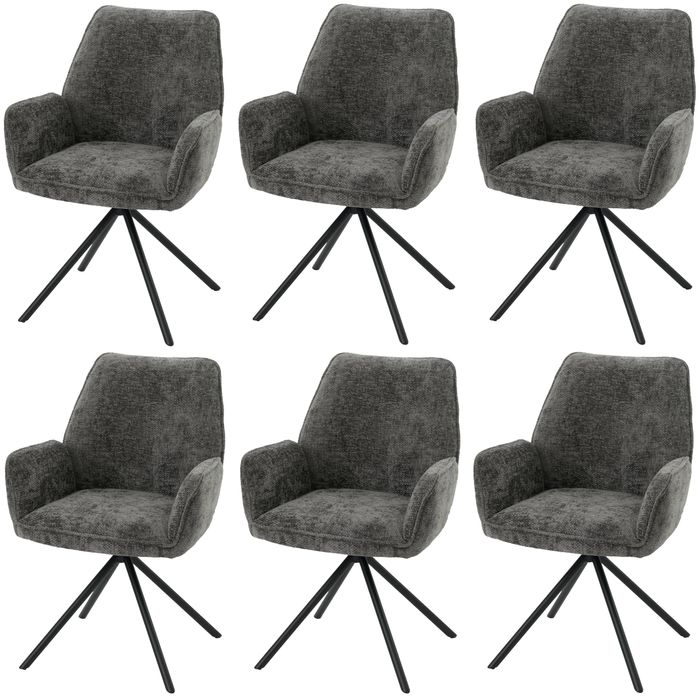 6er-Set Esszimmerstuhl HWC-G67, Küchenstuhl Stuhl mit Armlehne, drehbar Auto-Position, Chenille Öko-Tex MVG - dunkelgrau