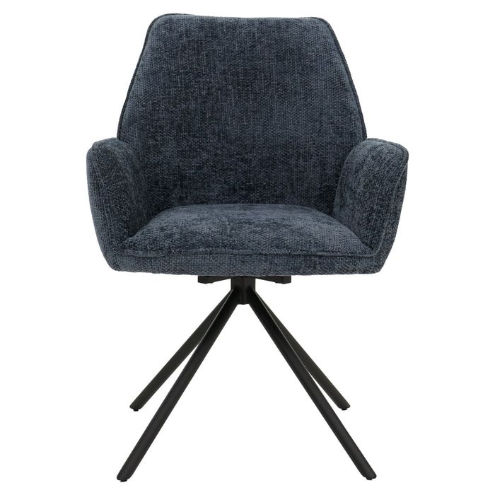 6er-Set Esszimmerstuhl HWC-G67, mit Armlehne, drehbar Auto-Position, Chenille Öko-Tex MVG – dunkelblau