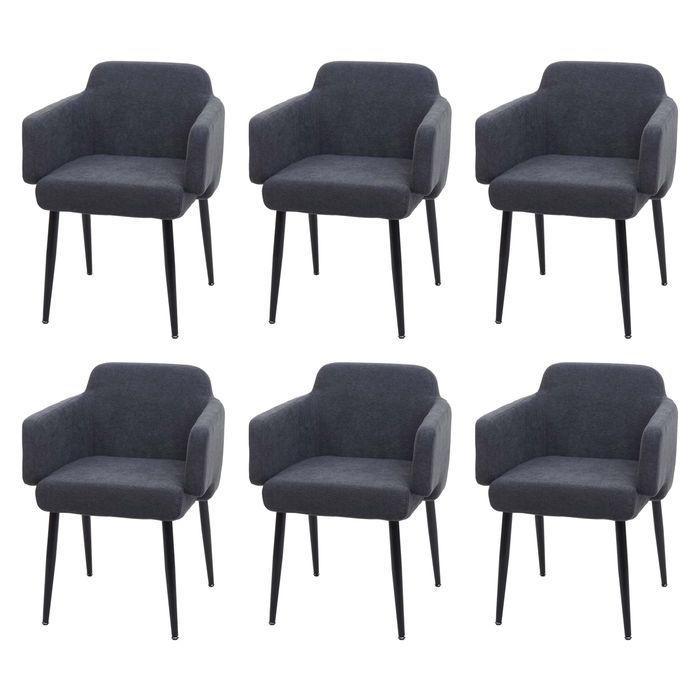 6er-Set Esszimmerstuhl HWC-L13, mit Armlehne, Stoff/Textil Metall - anthrazit