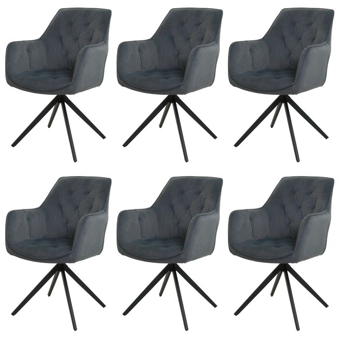 6er-Set Esszimmerstuhl HWC-L80, Küchenstuhl Polsterstuhl Stuhl mit Armlehne, drehbar, Metall Stoff/Textil - anthrazit