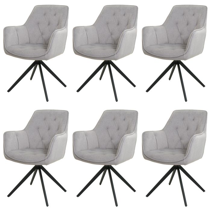 6er-Set Esszimmerstuhl HWC-L80, Küchenstuhl Polsterstuhl Stuhl mit Armlehne, drehbar, Metall Stoff/Textil - hellgrau