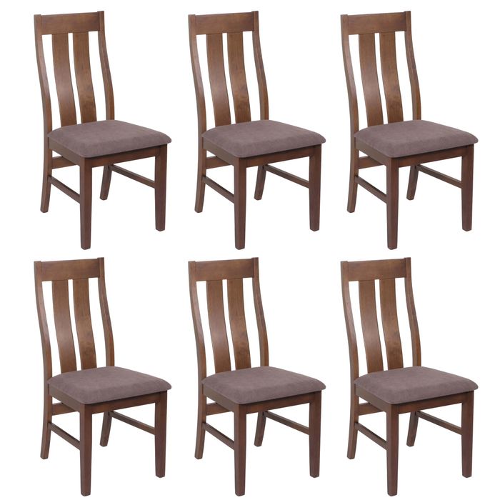 6er-Set Esszimmerstuhl HWC-M58, Küchenstuhl Lehnstuhl Stuhl, Stoff/Textil Massiv-Holz - dunkles Gestell, taupe