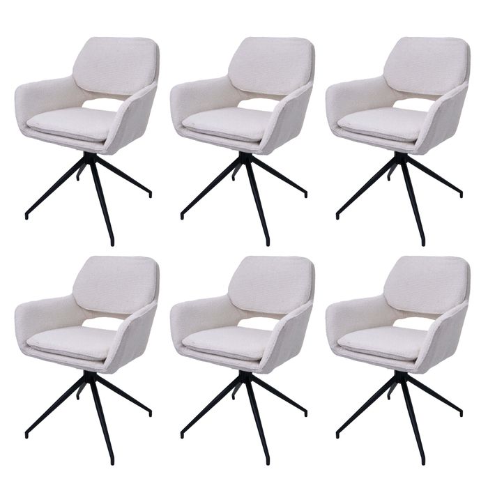 6er-Set Esszimmerstuhl HWC-N74, Küchenstuhl, drehbar Auto-Return, Stoff Bouclé (540g/m²) Öko-Tex - creme