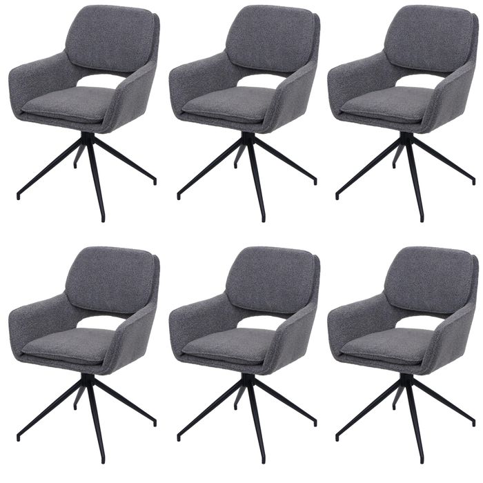 6er-Set Esszimmerstuhl HWC-N74, Küchenstuhl, drehbar Auto-Return, Stoff Bouclé (540g/m²) Öko-Tex - grau