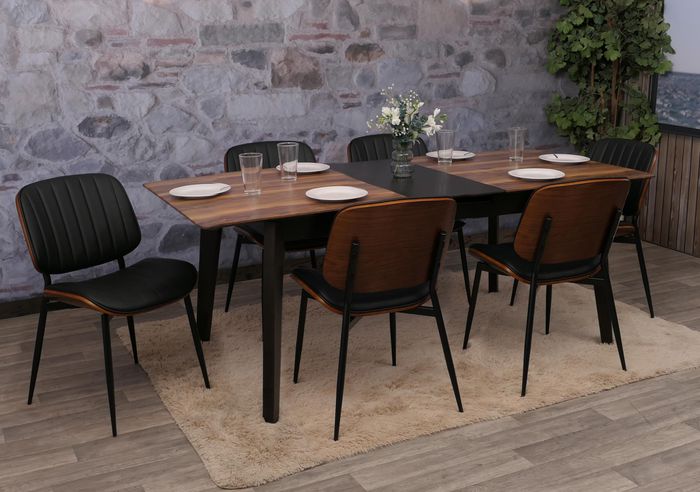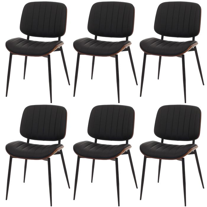 6er-Set Esszimmerstuhl HWC-O44, Bugholz Kunstleder Öko-Tex FSC® – Walnuss-Optik, schwarz