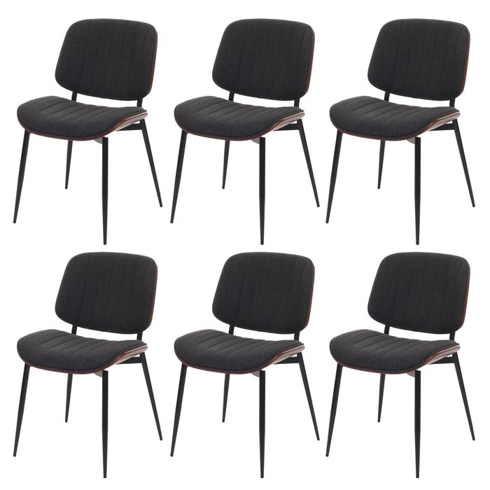 6er-Set Esszimmerstuhl HWC-O44, Bugholz Stoff (370g/m²) Öko-Tex FSC® – Walnuss-Optik, dunkelgrau