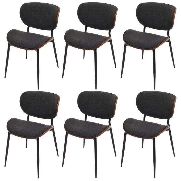 6er-Set Esszimmerstuhl HWC-O45, Bugholz Stoff (370g/m²) Öko-Tex FSC®-zertifiziert – Walnuss-Optik, dunkelgrau