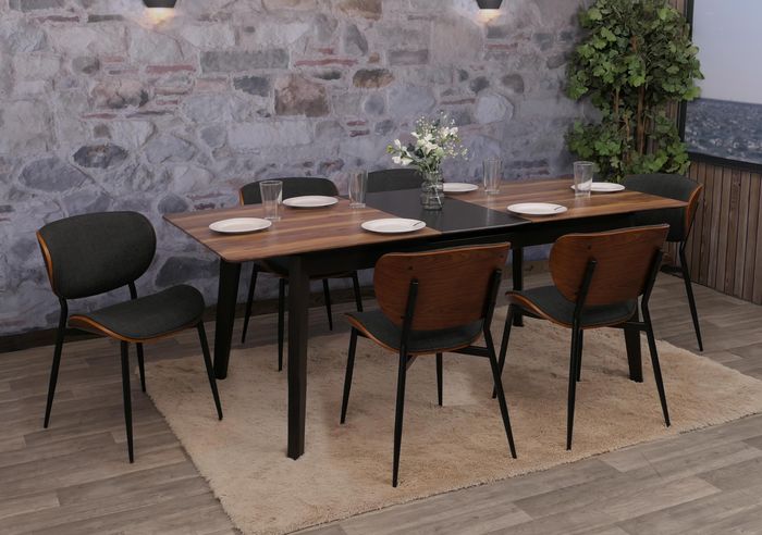 Erleben Sie stilvollen Komfort und zeitloses Design mit diesem exklusiven 6er-Set Esszimmerstühle, das Ihrem Wohnraum eine besondere Note verleiht. Die elegante, abgerundete Formgebung verbindet sich harmonisch mit dem edlen Bugholzgestell und schafft ein Erscheinungsbild, das gleichermassen modern wie klassisch wirkt. Der formschöne Sitzflächenbezug aus hochwertigem Stoff mit einer beeindruckenden Materialstärke von 370 g/m² überzeugt nicht nur optisch, sondern auch durch seine angenehme Haptik und Langlebigkeit.
