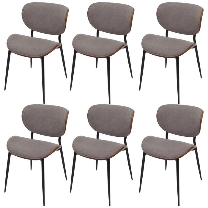 6er-Set Esszimmerstuhl HWC-O45, Bugholz Stoff (370g/m²) Öko-Tex FSC®-zertifiziert – Walnuss-Optik, hellgrau