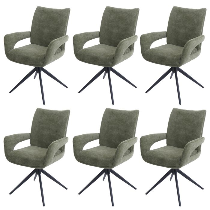6er-Set Esszimmerstuhl HWC-O78, drehbar Auto-Return, Stoff/Textil Chenille (310g/m²) Öko-Tex – grün