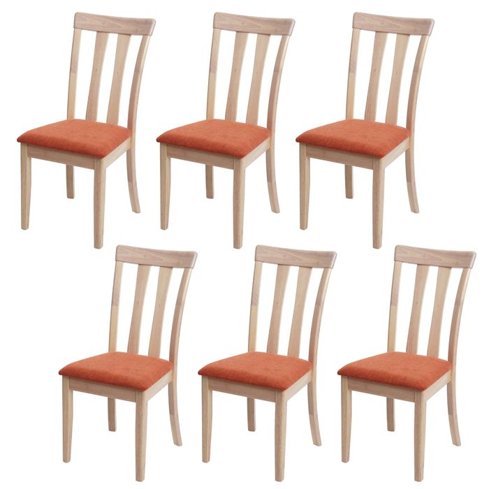 6er-Set Esszimmerstuhl, Küchenstuhl Stuhl, Stoff/Textil Massiv-Holz - naturfarbenes Gestell, orange