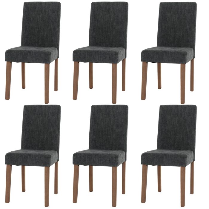 6er-Set Esszimmerstuhl Littau, Stoff/Textil Chenille Holz – dunkelgrau, naturfarbene Beine