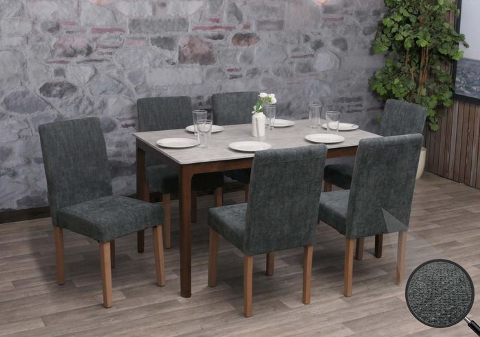 - Der Esszimmerstuhl wird im 6er-Set geliefert und besticht durch modernen Chenille-Stoffbezug mit strukturierter Oberfläche und angenehmer Haptik. Die komfortable Polsterung und die hohe Rückenlehne sorgen für optimalen Sitzkomfort.