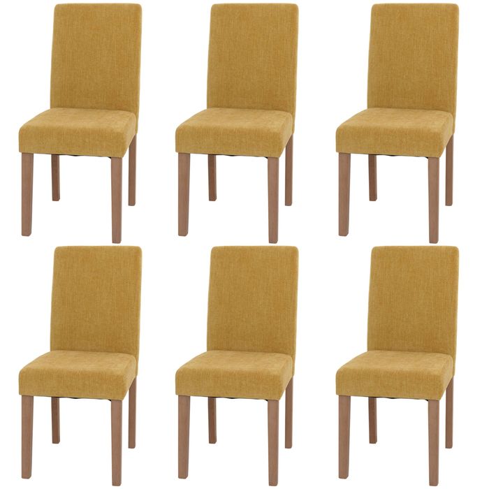 6er-Set Esszimmerstuhl Littau, Stoff/Textil Chenille Holz – gelb, naturfarbene Beine