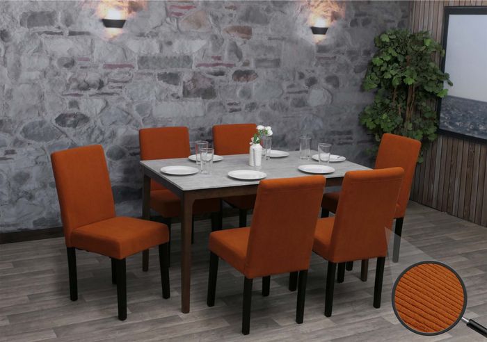 - Der Esszimmerstuhl wird im 6er-Set geliefert und besticht durch modernen Cord-Stoffbezug mit strukturierter Oberfläche und angenehmer Haptik. Die komfortable Polsterung und die hohe Rückenlehne sorgen für optimalen Sitzkomfort.