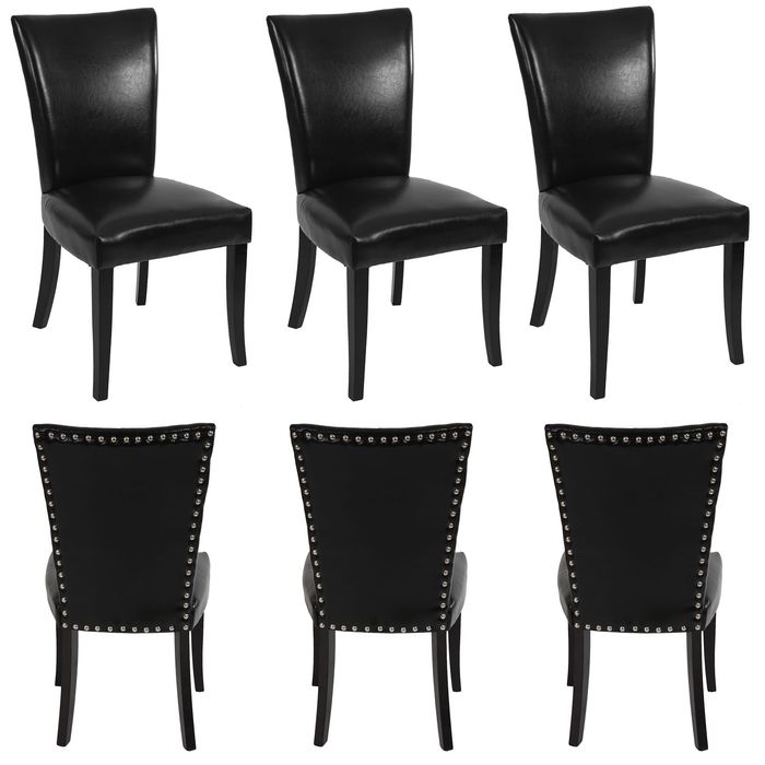 6x Esszimmerstuhl Chesterfield, Stuhl Küchenstuhl, Nieten Kunstleder, schwarz, dunkle Beine