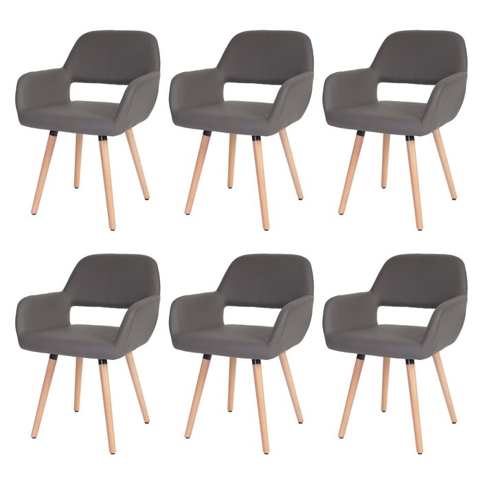 6x Esszimmerstuhl HWC-A50 II, Stuhl Küchenstuhl, Retro 50er Jahre Design Kunstleder, grau, helle Beine