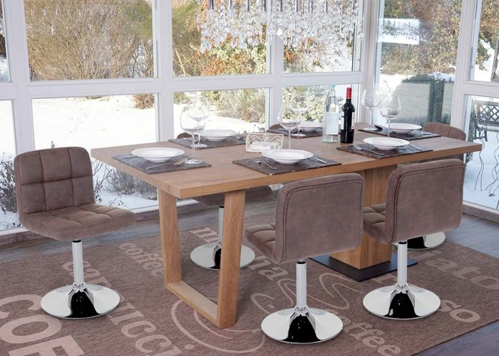 6x Esszimmerstuhl Kavala, Drehstuhl Stuhl, Wildlederimitat Chrom - vintage dunkelbraun