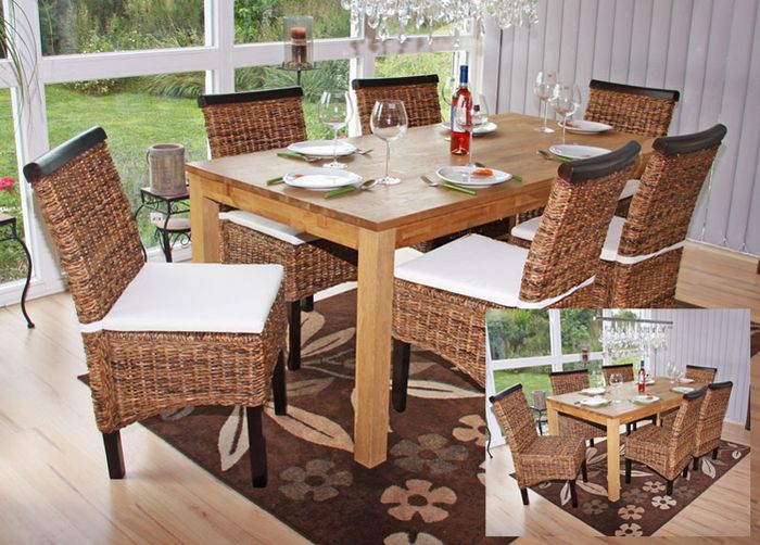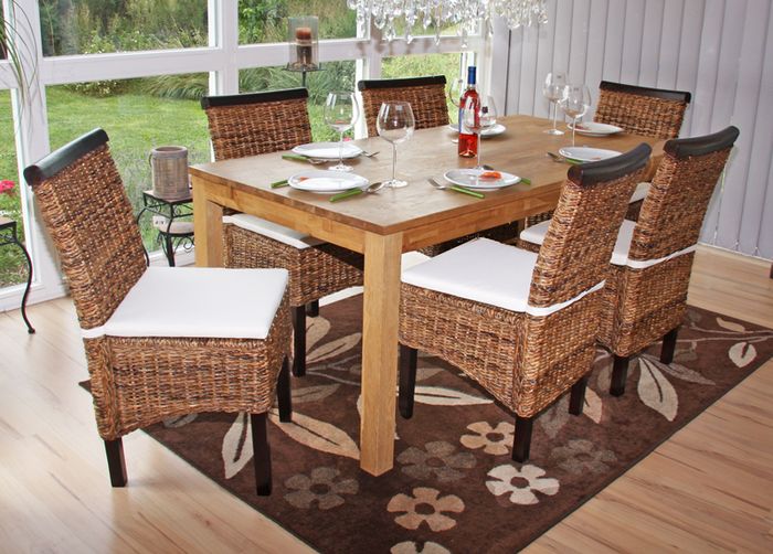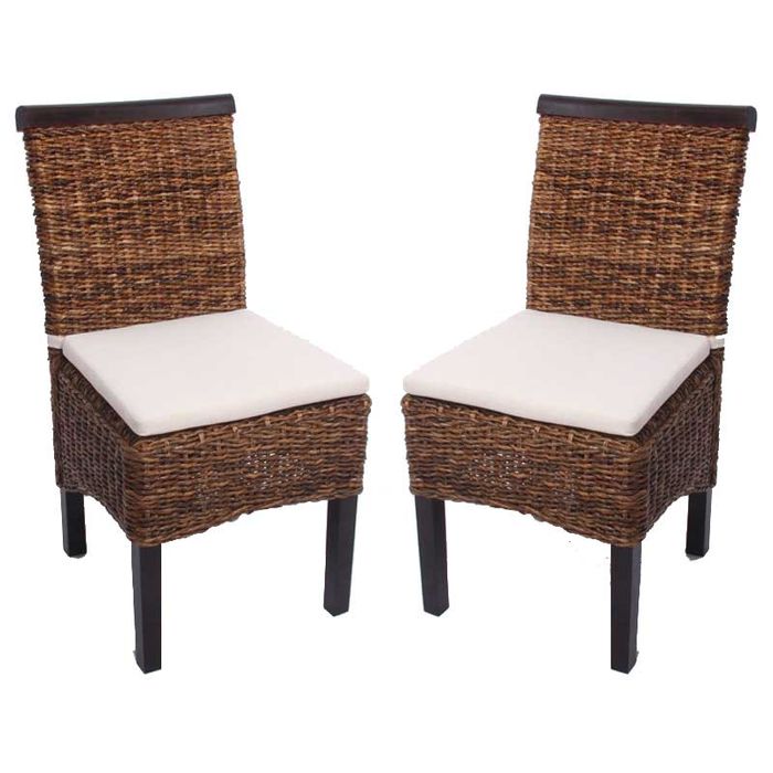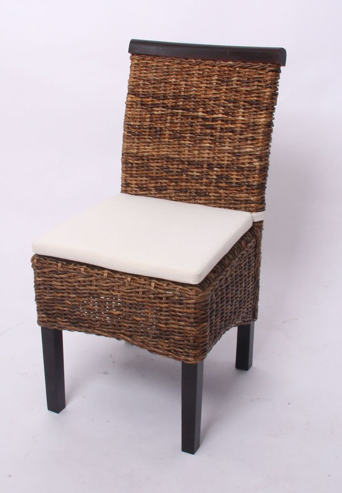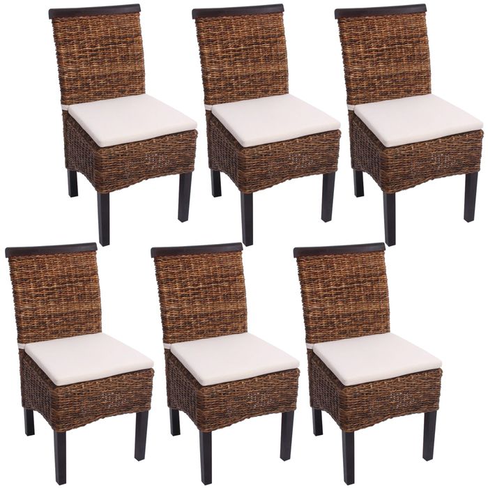 6x Esszimmerstuhl Korbstuhl M45 Stuhl Bananengeflecht - dunkel, mit Kissen