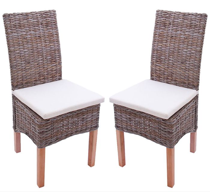 6x Esszimmerstuhl Korbstuhl Stuhl, Kubu-Rattan - mit Sitzkissen
