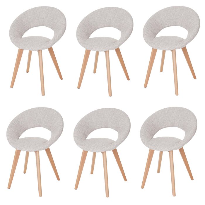 6x Esszimmerstuhl Palermo III, Stuhl Küchenstuhl, Retro 50er Jahre Design Textil, creme/grau
