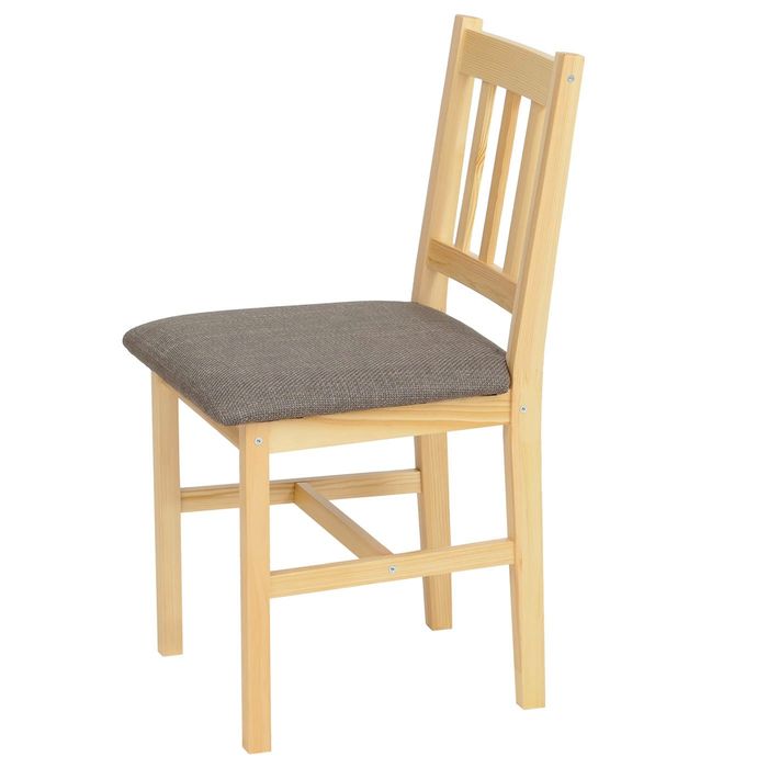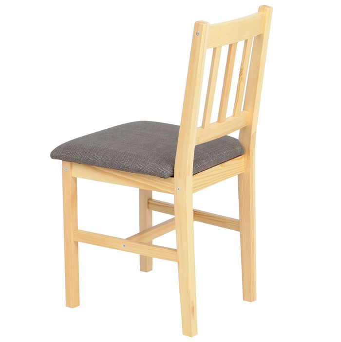 Esszimmer-Set HWC-F77, Massiv-Holz Kiefer Stoff Landhaus 110cm – natur Polster grau