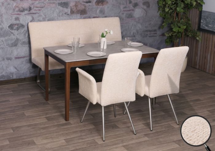 Esszimmer-Set HWC-G55, 2er-Set Stuhl mit Armlehne+Sitzbank 160cm, Edelstahl gebürstet Stoff/Textil Chenille – creme